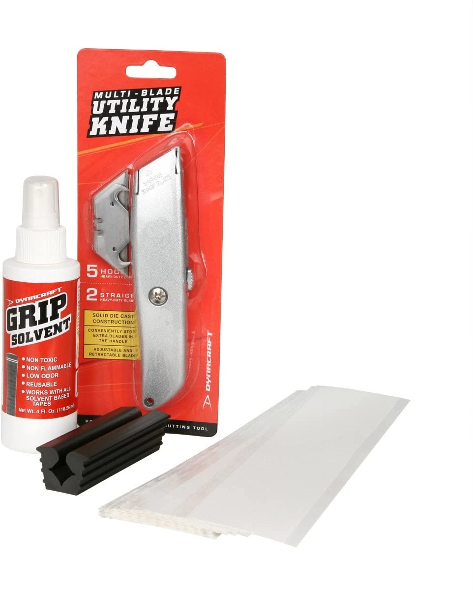 Save time & save money with the Dynacraft 26-Piece Complete Golf Re-Gripping Kit. For over 35 years, Dynacraft has been a trusted name in the golf club component industry by offering high quality products to build, repair and fit golf clubs for professionals and hobbyists alike. This kit is tailored to the do-it-yourselfer to have all the products necessary to re-grip an entire set of golf clubs, including easy-to-follow instructions and products. Grip kit includes the following:- 15 strips of 2″ double-sided grip tape- 4 oz bottle of grip solvent- rubber vise clamp – Utility knife – 2 Heavy duty straight blades – 5 Hooked Knife blades – Instruction sheet