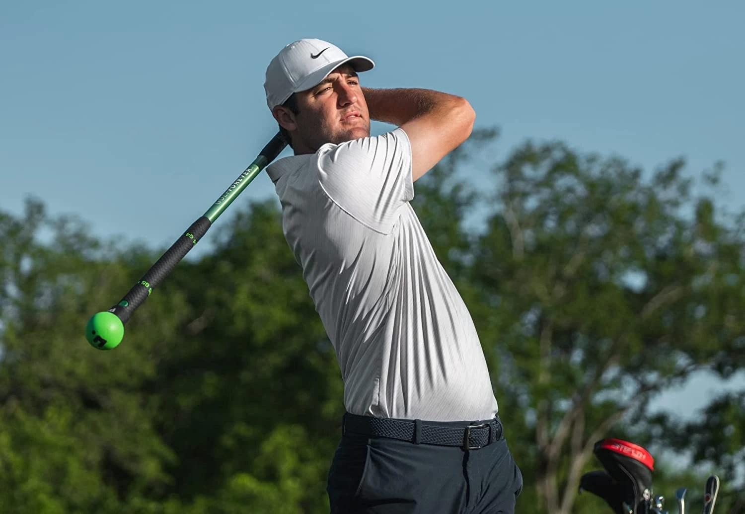 - Optimized Weighted Warmup Club - D3 Swing Weight Quick-Interchange Weighted Ball (green) that mimics the dynamic feel of your driver, but 2.5x heavier to help you loosen up properly