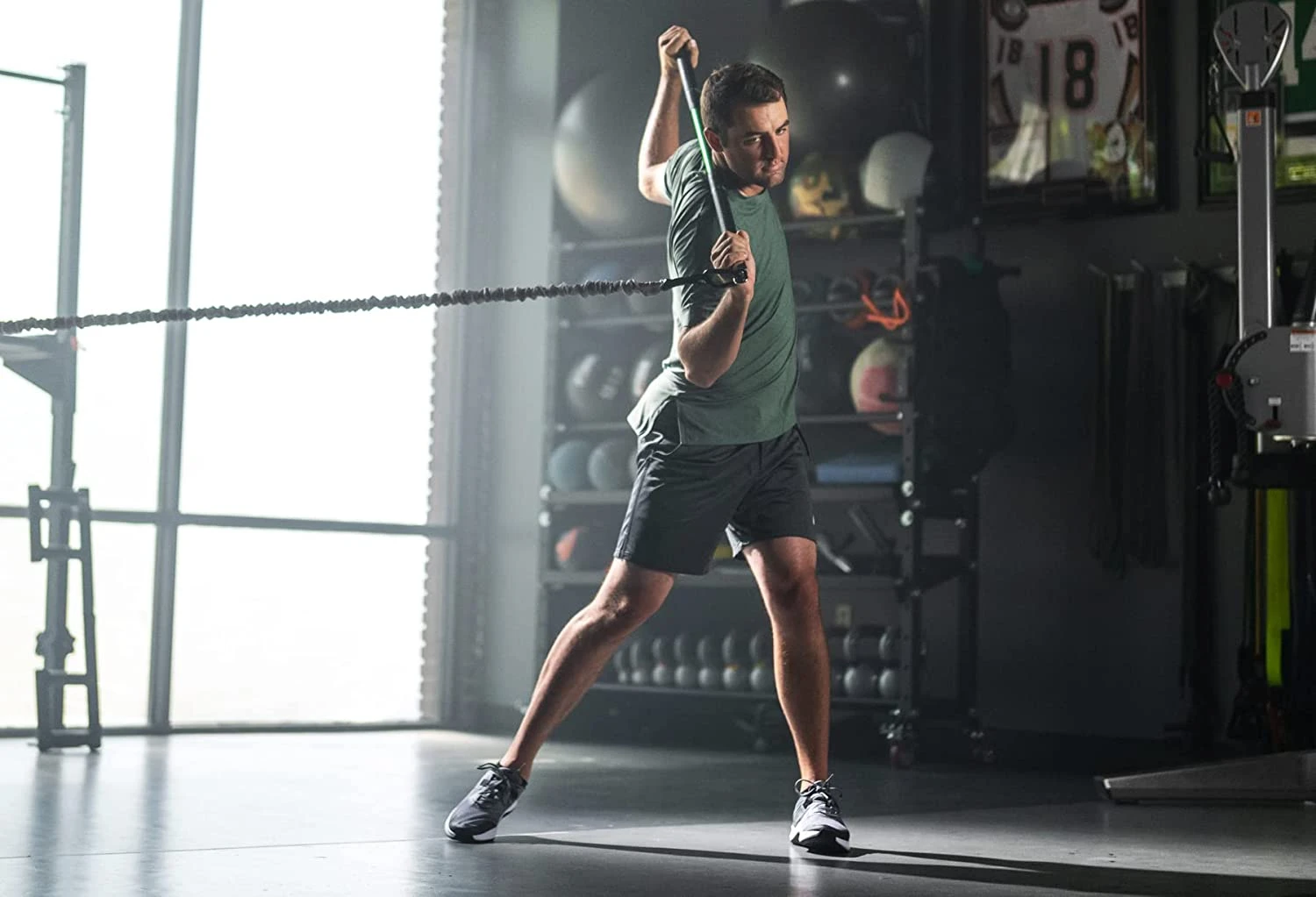 - Durable, 15-pound Latex Training Cord with Nylon safety sleeve which combines with the bar or the included handles to create two distinct golf-exercise tools.