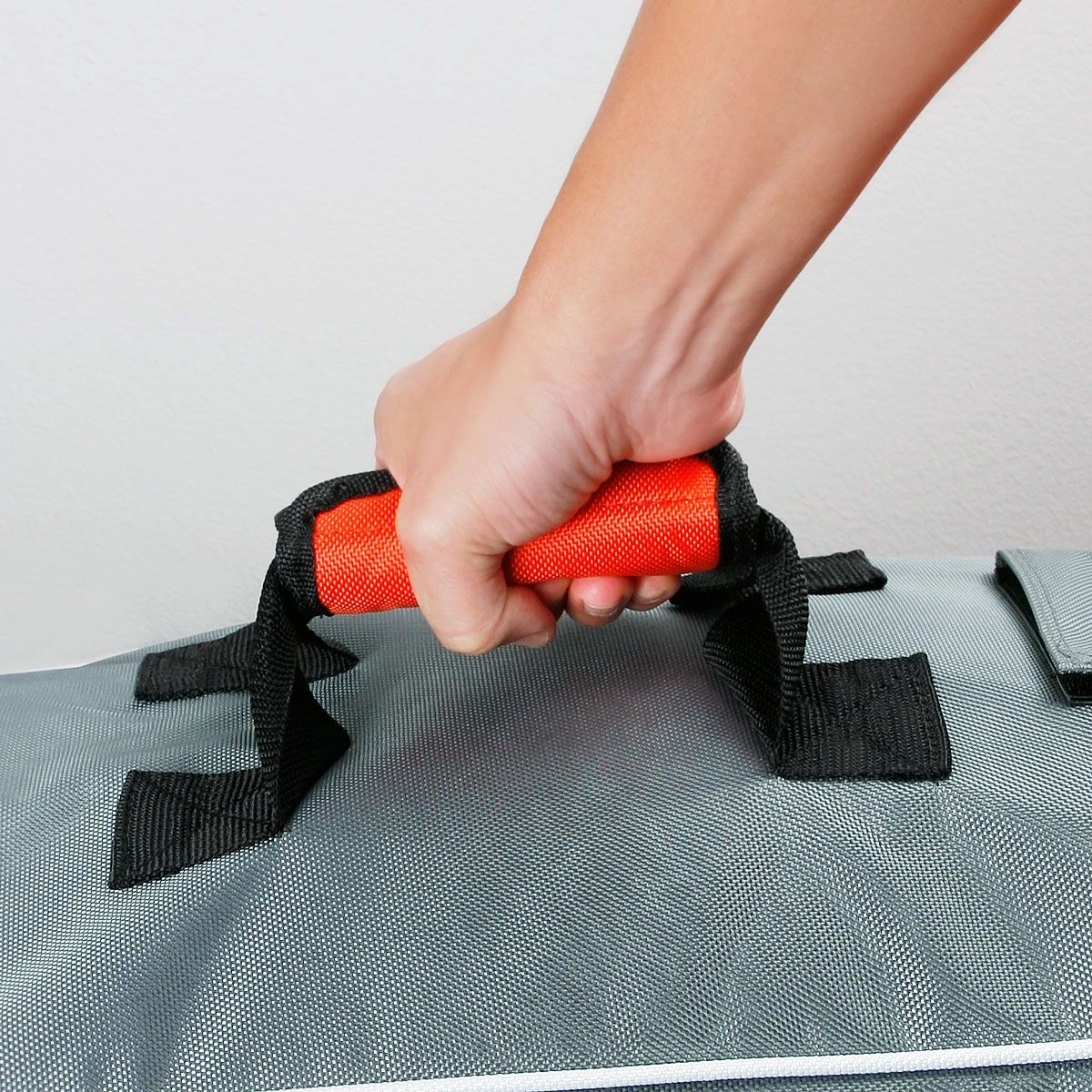 The comfortable, reinforced lift handles makes it easy to transport and get in and out of the car. It also includes an ID holder.